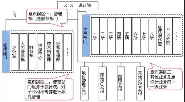 这一意识误区的产生一方面是由于职能部门从最初的设定到长期以来的运行都是服务于设计院母体,久而久之形成了一定的惯性思维,而后续逐步衍生了越来越多的子公司后,也未在权责利上做进一步梳理与明确;另一方面则确实也是设计院本身的职能工作繁重,无暇顾及子公司的管理。