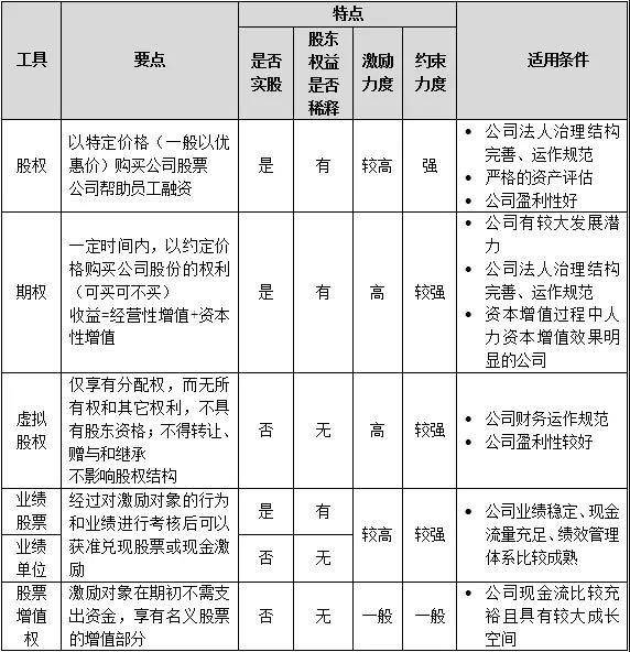 公司授予激励对象的一种权利,激励对象可以在规定的时期内以事先确定的价格购买一定数量的本公司流通股票,也可以放弃这种权利。通过这个方式激励对象取得股权的时间滞后,激励对象需要达到约定条件后才取得股权,参与公司决策和分红。好处在于重视对员工的长期激励,但是在期权变为股权之前,激励对象的参与感和心理安全感较低。同时公司也需要规范现有治理结构和股权管理。