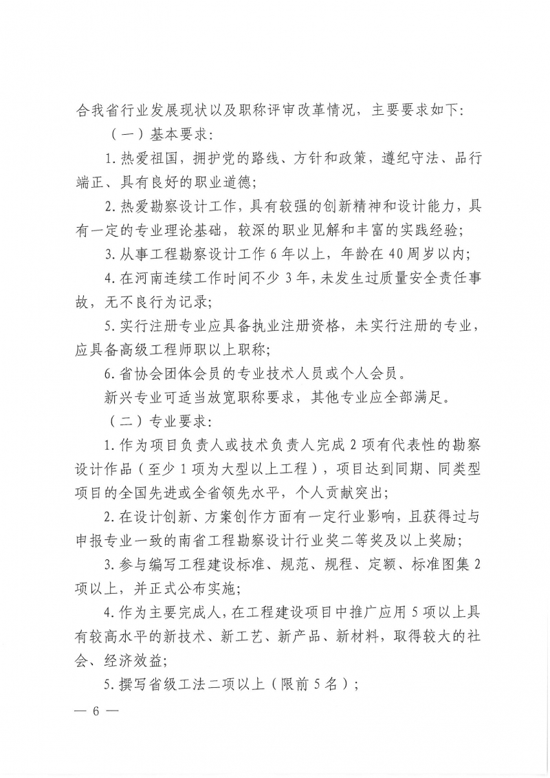 (五)培养合格的青年人才,可优先参加河南省工程勘察设计大师认定;